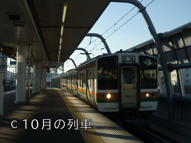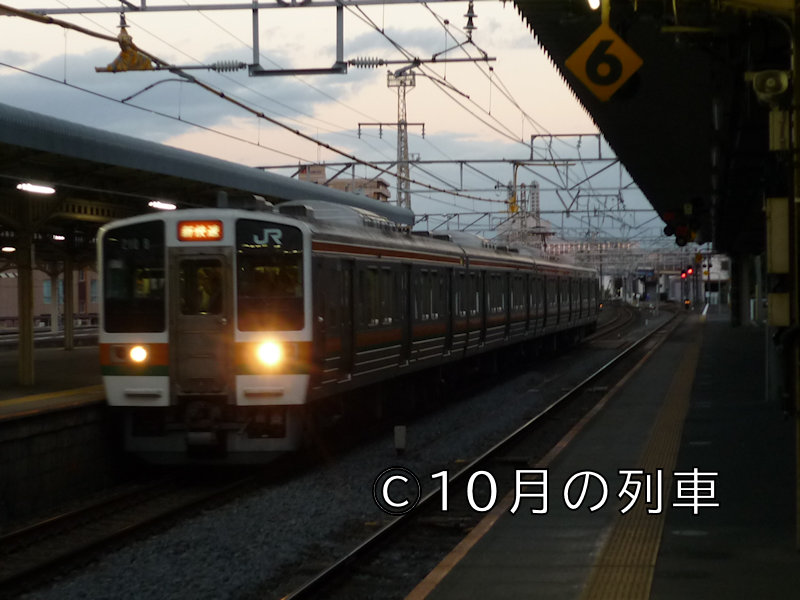 急いで撮ったのでとんでもない画像で申し訳ないのですが、2010年11月10日のこと。米原からの普通大垣行き電車で大垣駅に着くと、遠くから近づいてくる白熱電球のヘッドライトが見えたのですが、なんとそれが313系や311系ではなく、この211系0番台車だったのです。所定の車両運用では211系0番台が新快速に、しかも4両単独で使われるなんてこの頃は無かったはずなんですが、なんらかの都合で車両が変更になったのでしょうか?