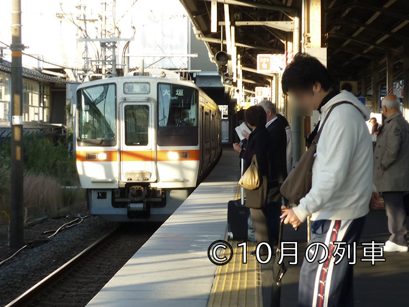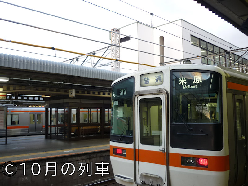 2010年秋、米原駅から大垣までの普通列車を待っていると、やってきたのが311系の4両編成、G2編成でした。昔は30分間隔への増発と引き換えに2両編成が標準だった時期もあるこの区間ですが、今や4両編成以上の列車が1時間に2本は走るので便利に、そして座りやすくなったものです。