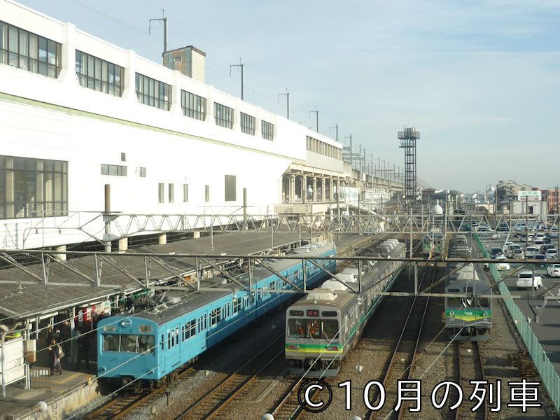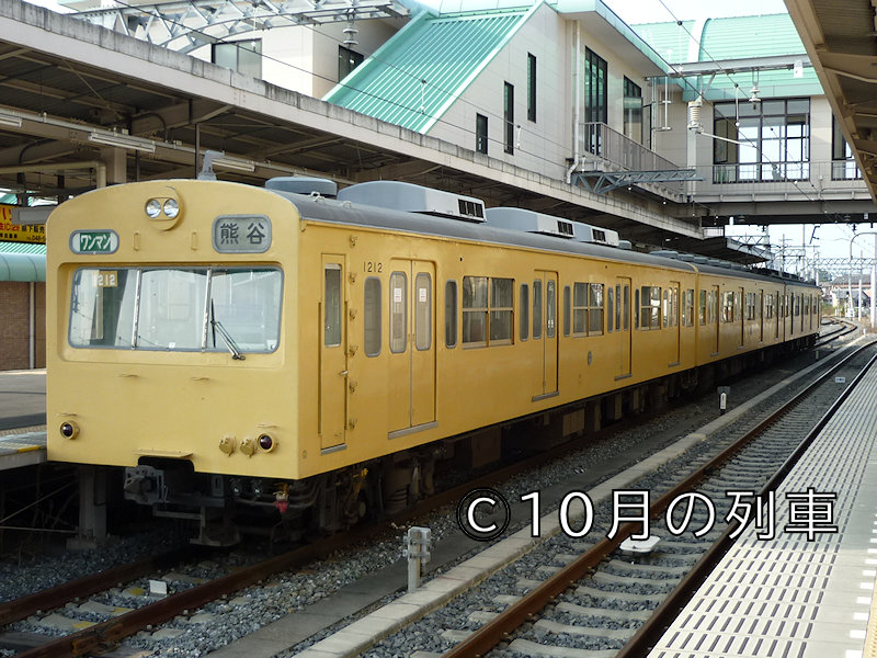 国鉄101系としては2番目に採用された色となる、カナリアイエローこと黄色5号となった1000系のラストナンバー、1012Fです。羽生駅にて熊谷行きとして発車を待っています。この塗色で当初は国鉄山手線に投入された101系ですが、101系の性能特性と山手線の路線条件が合わず、わずか数年で後継の103系電車がウグイス色で山手線に投入。山手線を追われたカナリアイエローの101系はそのまま中央総武緩行線へと転出したため、カナリアイエローがそのまま中央総武緩行線の色として定着したというエピソードがあります。